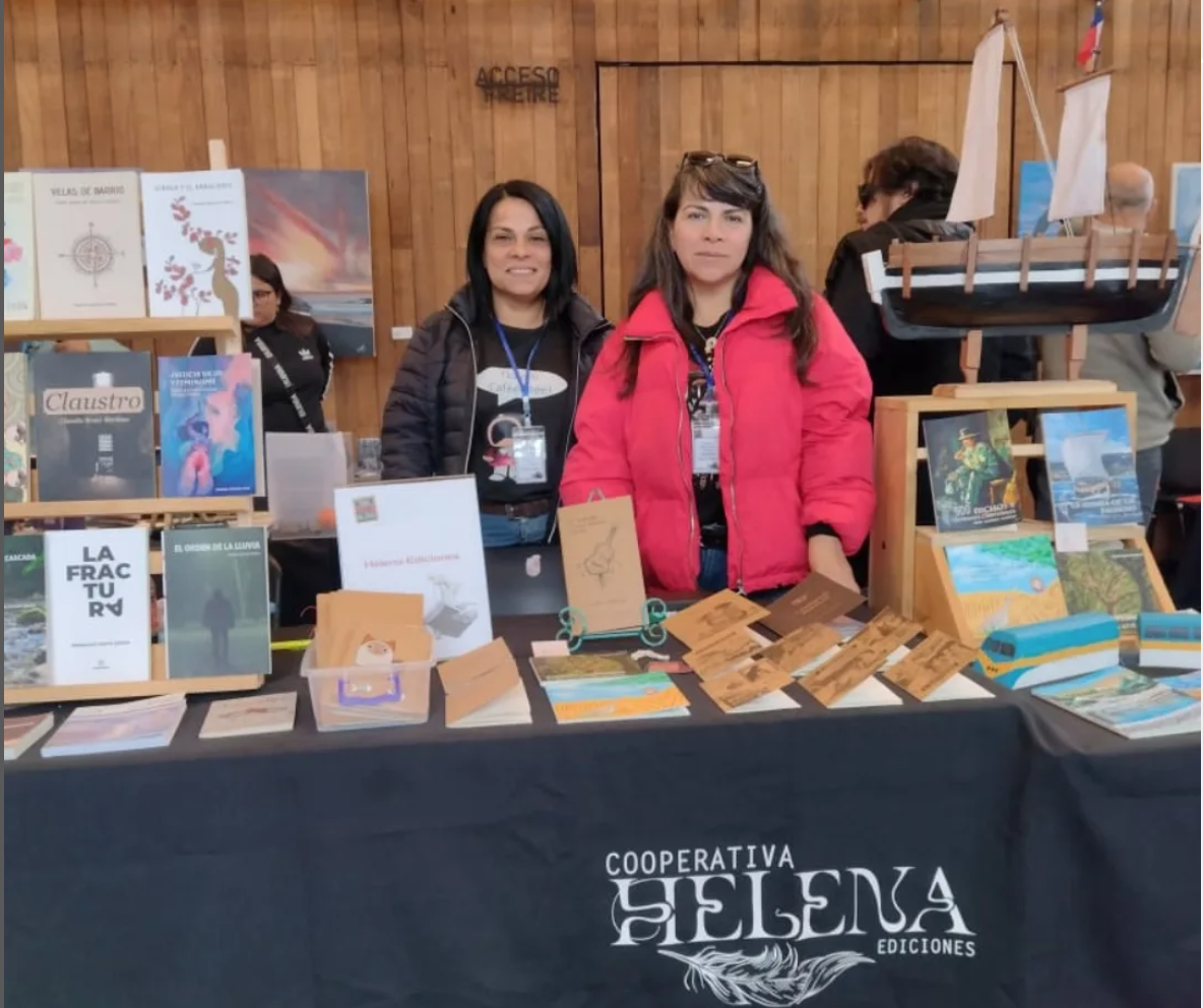 Nuestras cooperadas Fabiola y Romy Bernal Díaz, representaron a nuestra editorial en el evento maulino y tuvieron la oportunidad de conocer a otros actores del libro del país, y conocer propuestas como de la editorial de Santiago Cormorán Ediciones, con su catálogo sobre René Silva Catalán y Christian Aedo Jorquera, y sus libros de novela negra: "Ni a la diestra de nadie", de Sonia González; "Fuego de juego", de Ramón Díaz; y "Masacre", de Charlie Becerra, entre otros.